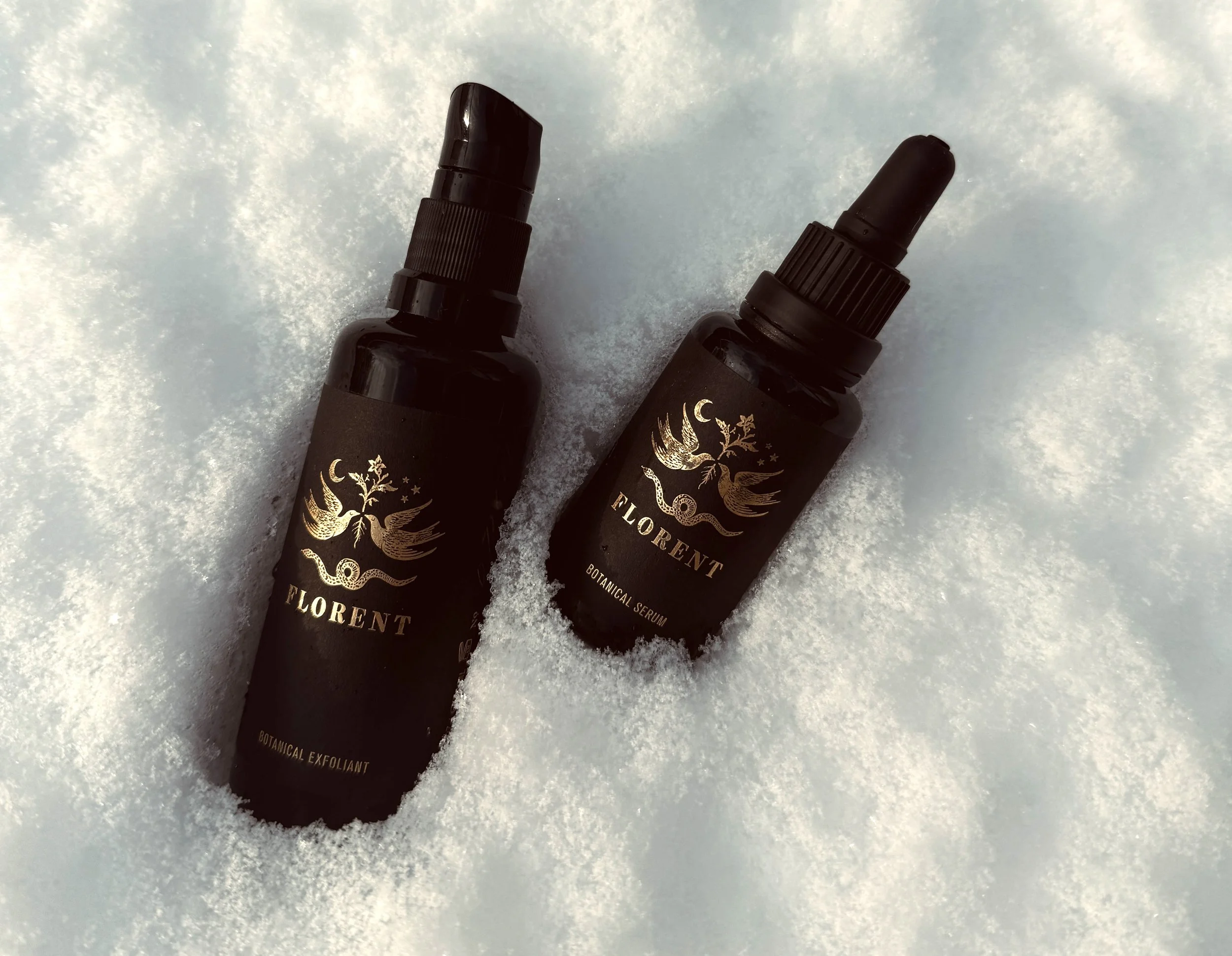 Our ingredients are developed in-house using biodynamic, organic, and wild-harvested plants. Whole plant extractions and water elements are created using traditional methods, such as solar infusions and hydro distillation. The glycerites in our serum and exfoliant are produced using certified organic flax-based (palm and soy-free) glycerin. Our beeswax is sourced certified organic, fair trade, and cruelty free.